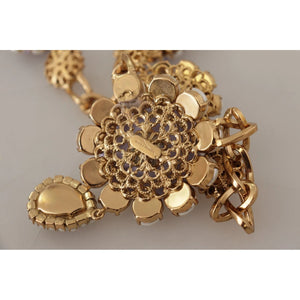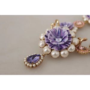 Dolce & Gabbana Gold Tone Floral Crystals Purple Embellished