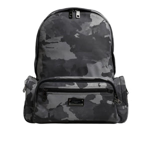 Dolce & Gabbana Gray Cotton Camouflage Logo Plaque Backpack Bag