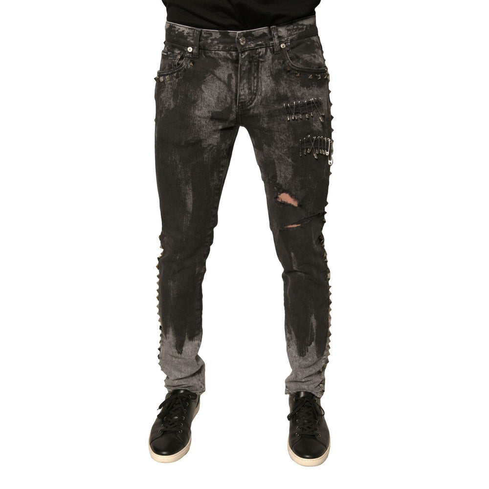 Dolce & Gabbana Gray Embellished Cotton Skinny Denim Jeans