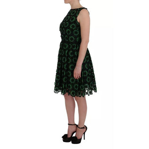 Dolce & Gabbana Green Floral Ricamo A-Line Shift Dress