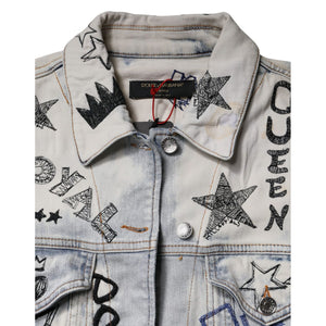 Dolce & Gabbana Light Blue Graffiti Button Down Denim Jacket