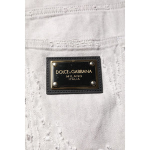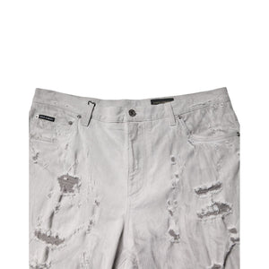 Dolce & Gabbana Light Gray Tattered Men Denim Bermuda Shorts