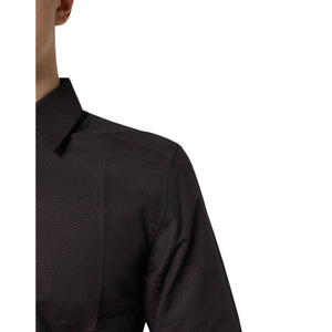 • Dolce & Gabbana Maroon Jacquard Cotton GOLD Men Dress Shirt