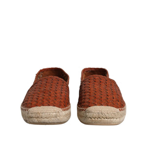 Dolce & Gabbana Maroon Woven Leather Men Espadrille Shoes