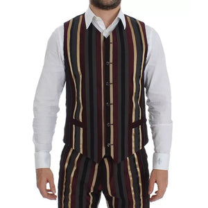 Dolce & Gabbana Multicolor Striped Runway 3 Piece Slim Fit Vest Suit