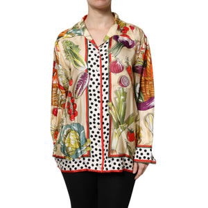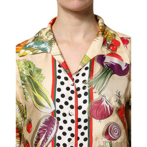 Dolce & Gabbana Multicolor Vegetables Silk Long Sleeves Top
