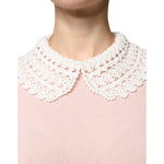 Dolce & Gabbana Pink Cashmere Collar Knitted Long Sleeves Top