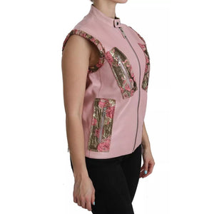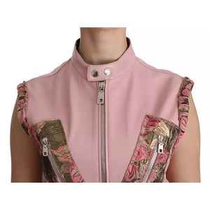 Dolce & Gabbana Pink Leather Sleeveless Vest Jacket Blouse
