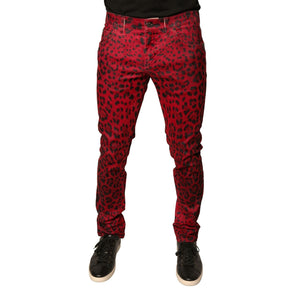 Dolce & Gabbana Red Leopard Cotton Stretch Skinny Denim Jeans