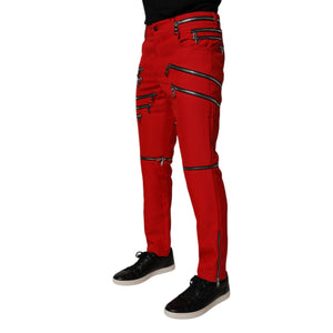 Dolce & Gabbana Red Zipper Embellished Straight Pants