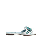Dolce & Gabbana Silver Blue Leather Bead Embellish Slide Shoes