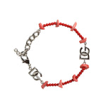 Dolce & Gabbana Silver Tone Brass Beaded Resin DG Logo Chain Bracelet