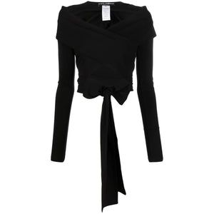 cut-out wrap top from DOLCE & GABBANA featuring stretch-jersey, wrap design, cut-out detailing, V-neck, front bow fastening, long sleeves and black. Cropped top Size and Fit - This piece fits true to size. We recommend you get your regular size. Model is 1,75m / 5ft 8in wearing size 40 (IT)