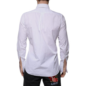 Dolce & Gabbana White Bib Cotton Poplin GOLD Men Formal Shirt