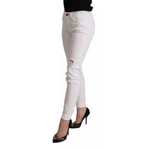 Dolce & Gabbana White Cotton Denim Pretty Slim Fit Jeans