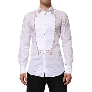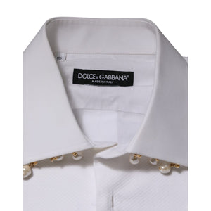 Dolce & Gabbana White Cotton DG Logo Pearl Chain Formal Shirt