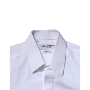 • Dolce & Gabbana White Cotton GOLD Long Sleeves Formal Shirt