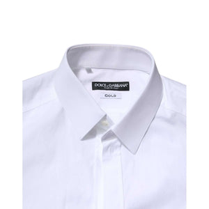 Dolce & Gabbana White Cotton GOLD Long Sleeves Formal Shirt