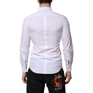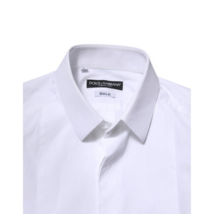 • Dolce & Gabbana White Cotton GOLD Long Sleeves Men Dress Shirt