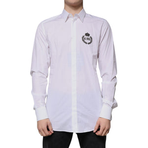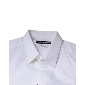 Dolce & Gabbana White Cotton Logo Formal Men GOLD Dress Shirt