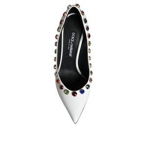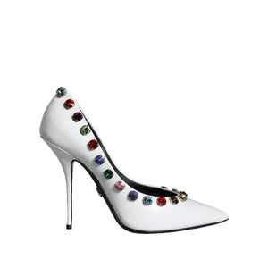 Dolce & Gabbana White Crystal Leather High Heels Pumps Shoes