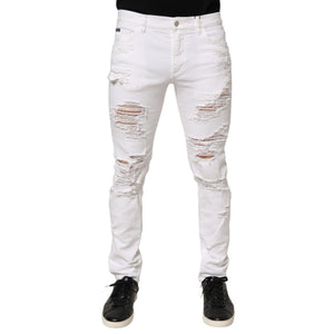 Dolce & Gabbana White Distressed Ripped Denim Trouser Jeans