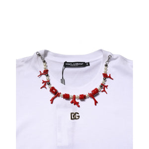 Dolce & Gabbana White Embellished Cotton Crew Neck T-shirt