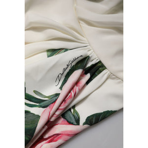 Dolce & Gabbana White Floral One Shoulder Sheath Midi Dress