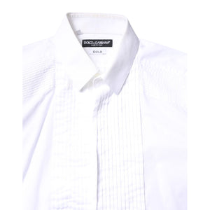 Dolce & Gabbana White GOLD Cotton Poplin Bib Men Dress Shirt