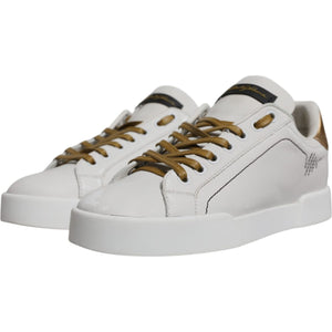 Dolce & Gabbana White Gold Leather Low Top Sneakers Shoes