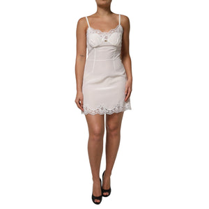 Dolce & Gabbana White Lace DG Logo Silk Dress Sleepwear