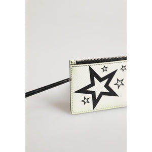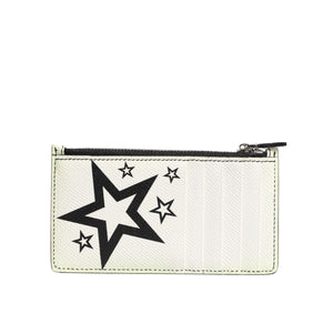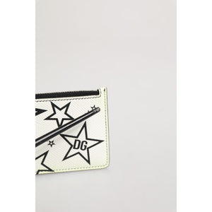 Dolce & Gabbana White Leather Douphin DG Logo Star Print Card Holder Wallet