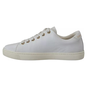 Dolce & Gabbana White Leather Gold Red Heart Sneakers Shoes