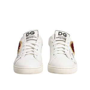 Dolce & Gabbana White Leather Heart Embellished Sneakers Shoes