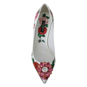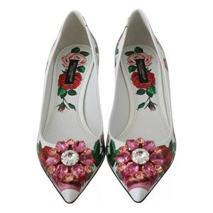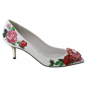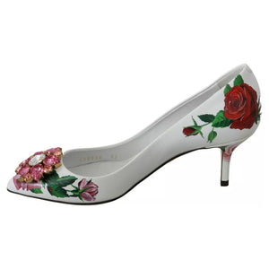 Dolce & Gabbana White Leather Roses Crystal Pumps Shoes