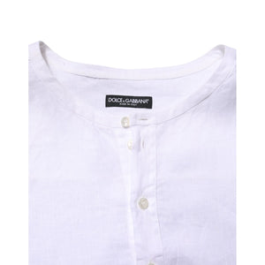 Dolce & Gabbana White Linen Long Sleeves Casual Men Shirt