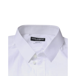 Dolce & Gabbana White Logo Cotton Slim Fit GOLD Dress Shirt
