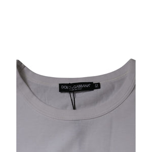 • Dolce & Gabbana White Logo Embossed Cotton Crewneck T-shirt