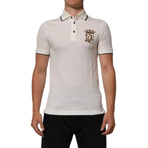 Dolce & Gabbana White Logo Embroidery Cotton Polo T-shirt