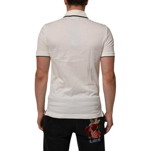 • Dolce & Gabbana White Logo Embroidery Cotton Polo T-shirt