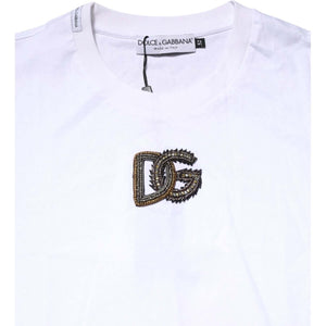Dolce & Gabbana White Logo Embroidery Crew Neck T-shirt