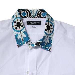Dolce & Gabbana White Majolica Detailing GOLD Dress Shirt