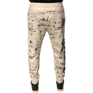 Dolce & Gabbana White Printed Cotton Jogger Sweatpants Pants