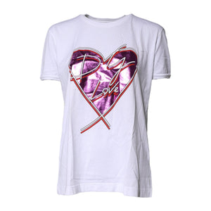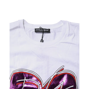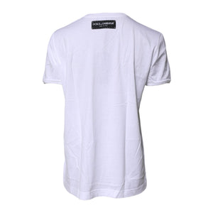 Dolce & Gabbana White Printed Cotton Round Neck Top T-shirt