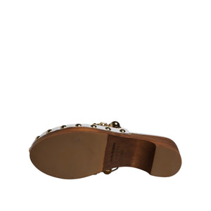 Dolce & Gabbana White Raffia Clogs Bejeweled Chain Sandals Shoes