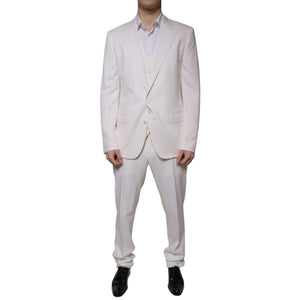 Dolce & Gabbana White Wool Silk 3 Piece SlimFit Formal Suit