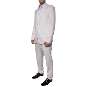 • Dolce & Gabbana White Wool Silk 3 Piece SlimFit Formal Suit