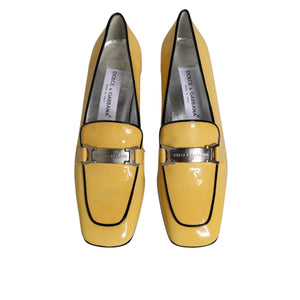 Dolce & Gabbana Yellow Leather Logo Plaque Slip On Mocassin Shoes