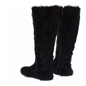 Dolce & Gabbana Black Xiangao Lamb Fur Leather Boots