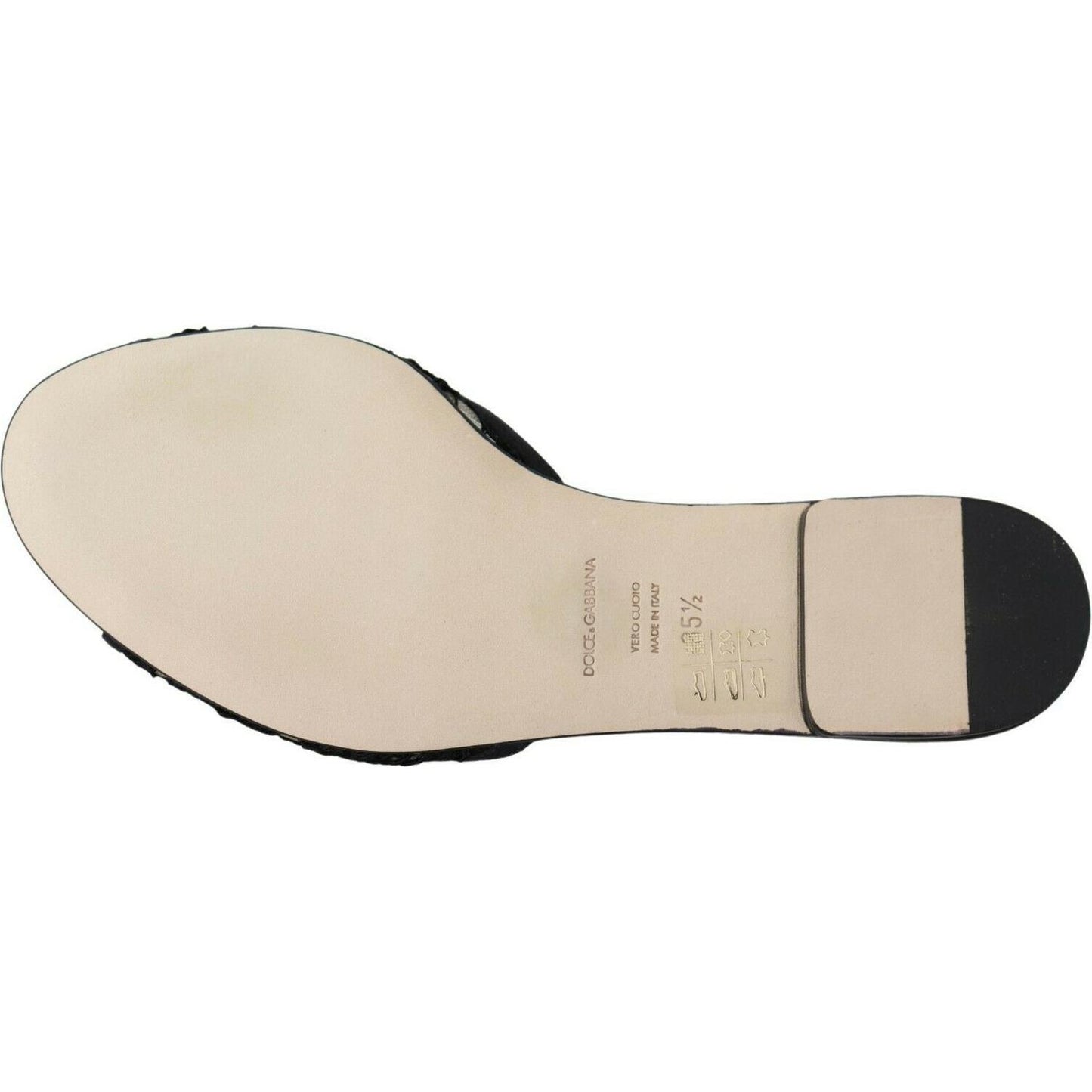 • Dolce & Gabbana Black Taormina Lace Slides Crystals Flats Shoes